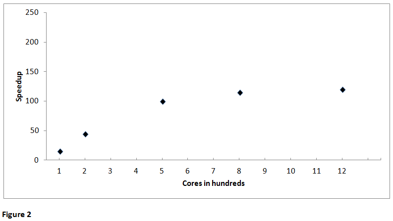 At some point, using more processors is likely to have little additional benefit, because the potential for increasing speed is limited by the ratio of serial to parallel code in the application. Figure 2 reflects such a scenario, which shows little or no performance benefit from using more than 500 cores. If you identify such a point in your test runs, it would make little sense to base your allocation request on higher numbers of cores.
