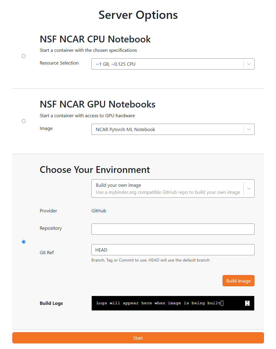 Binder is integrated directly into the NCAR Kubernetes JupyterHub. After logging in with your UCAR CIT credentials: