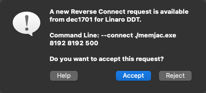 When your job starts, the GUI will show that a “Reverse Connect Request” has been made. Accept the request to continue.