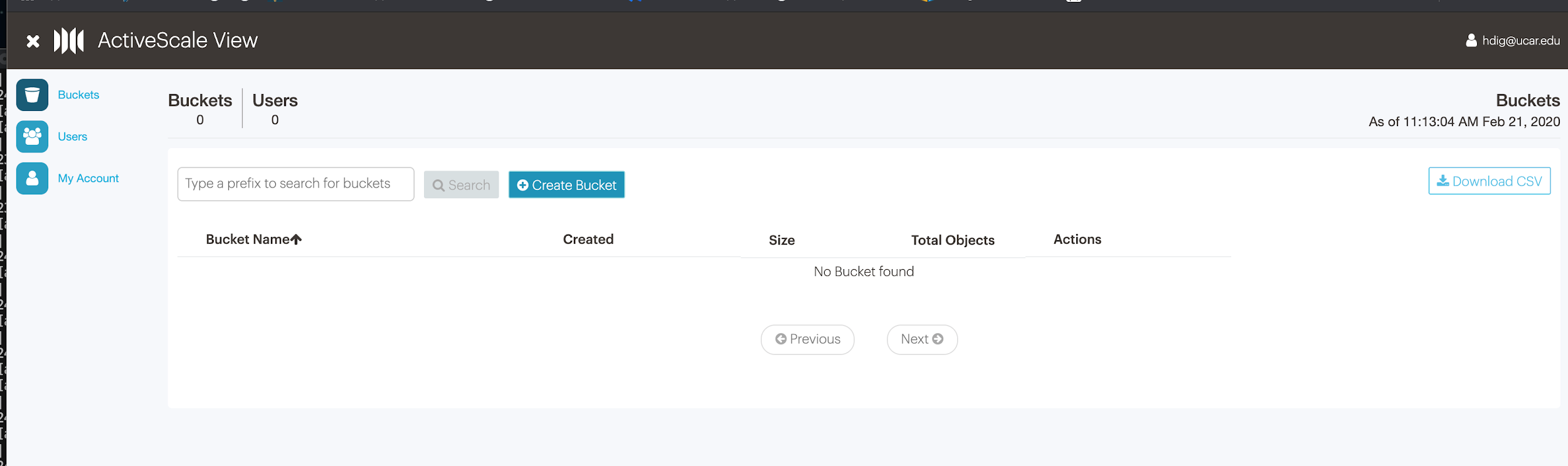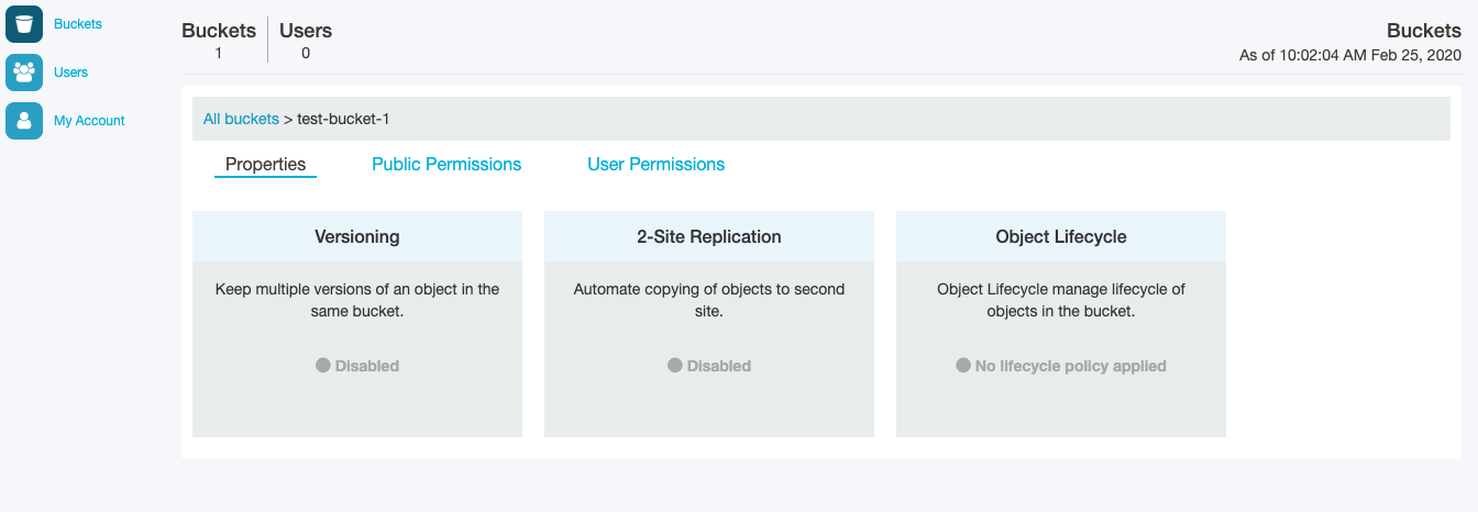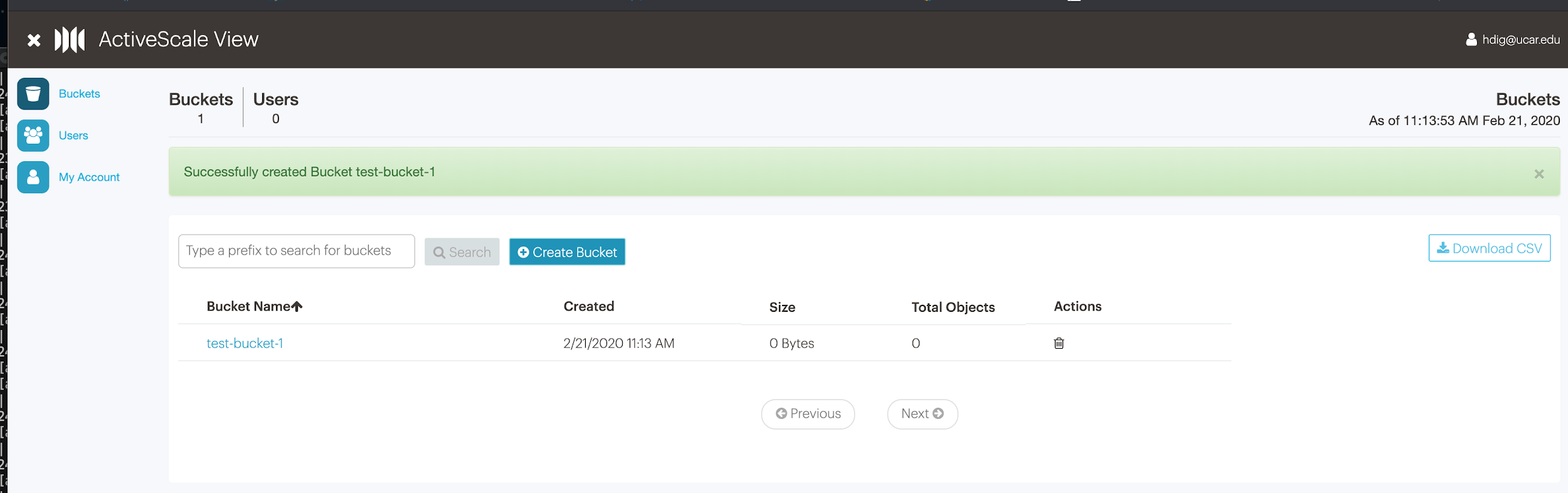 Now that a bucket has been created, you can write objects to the bucket and read from it using the access and secret keys that you used to log onto the web interface.